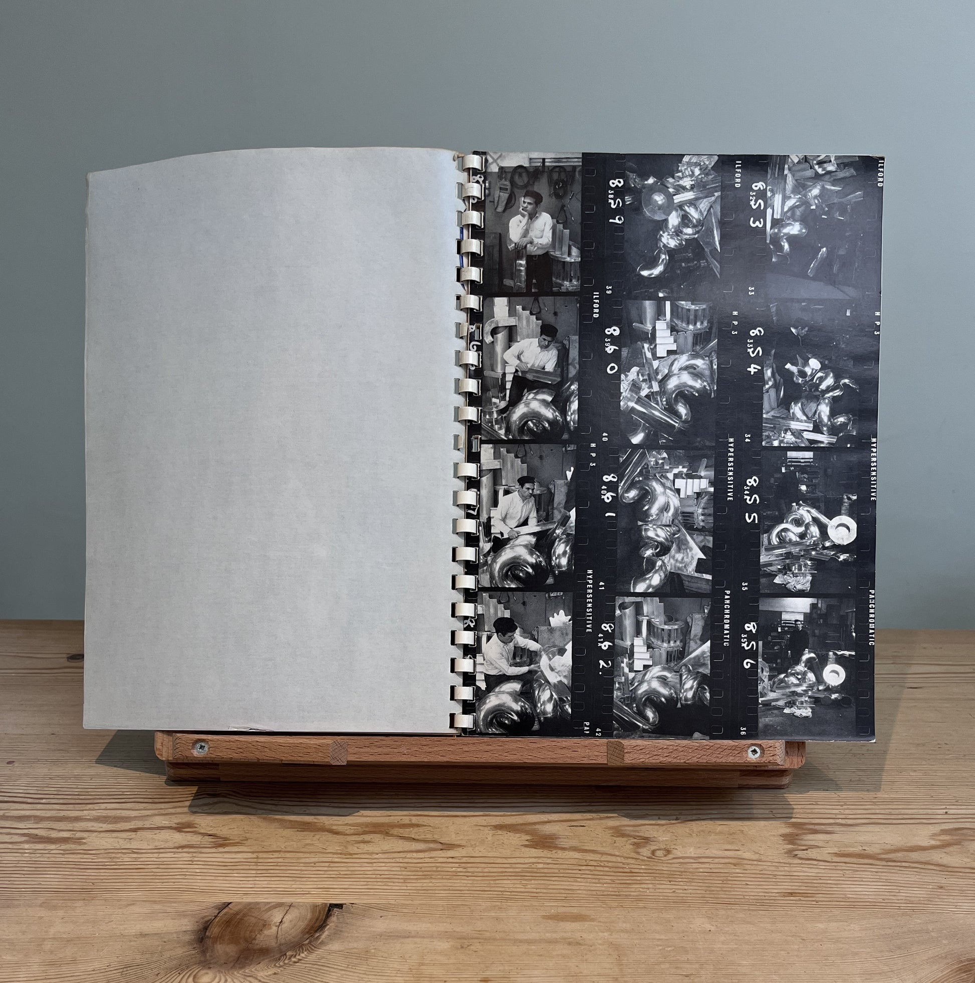 Condition: Clean and complete internally, the silvered cover show a few handling marks and signs of damp along the top edge. The plastic spiral binding is now a little fragile (as one might expect) and is missing two rings.