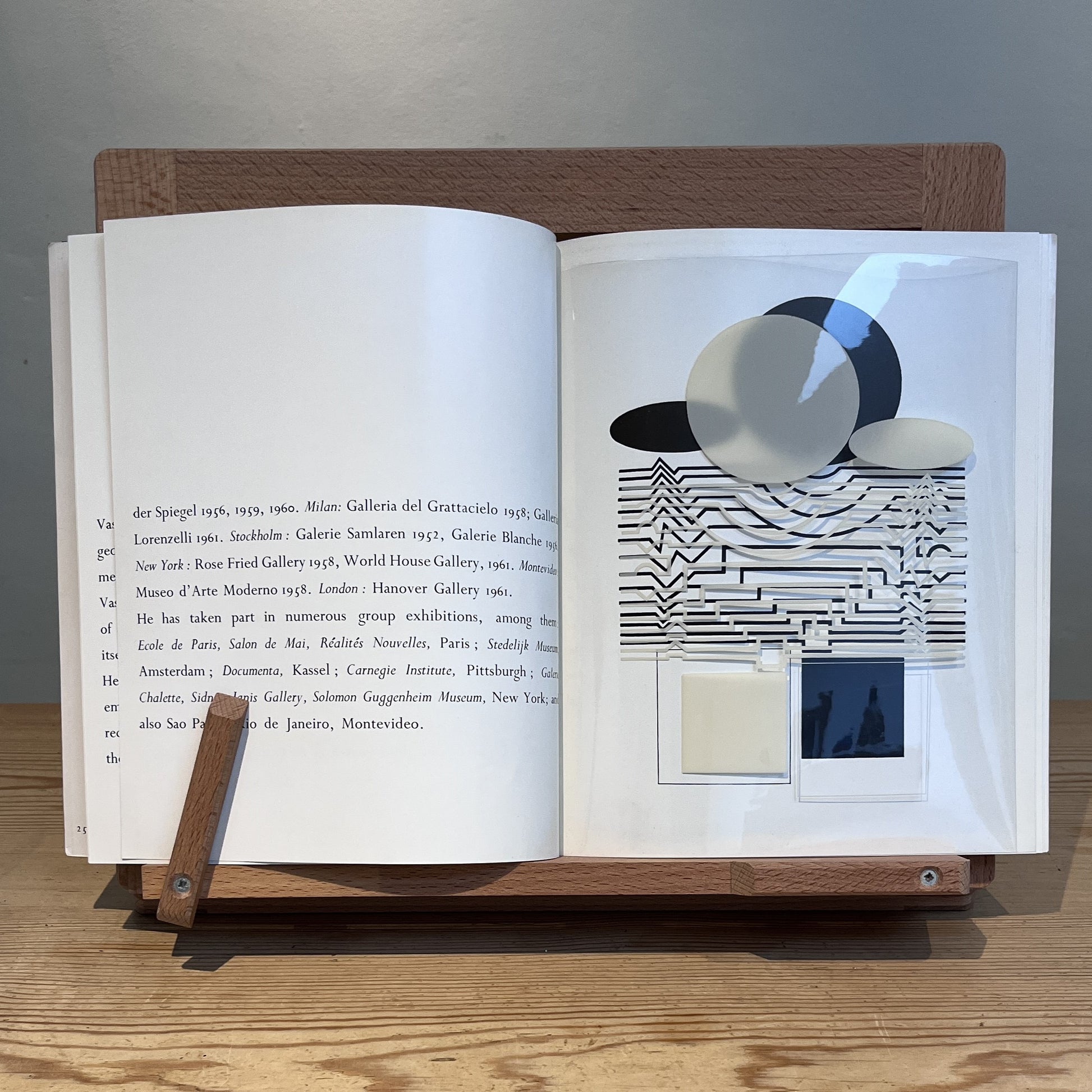 The Hungarian op-art pioneer Vasarely was already quite a well established name in Europe when he held this 1961 exhibition at London's Hanover Gallery, but this may well have been his first solo exhibition in London. Whilst interesting for the works included, the catalogue itself is a great piece of period design, from the eye-popping cover image to the loose insert which allows you to create your own abstract image inside!